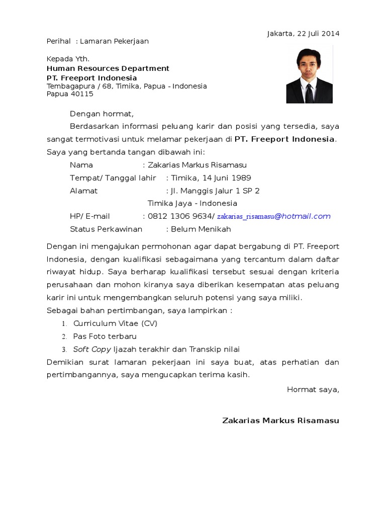 113 contoh surat lamaran kerja di pt indomarco surat lamaran kerja. Magelang, 11 juli 2019 hormat saya, isi materai disini (nama anda) contoh surat lamaran kerja untuk lulusan sma/smk jakarta, 20 juli 2012 kepada yth, hrd pt ykk zipper indonesia jl.